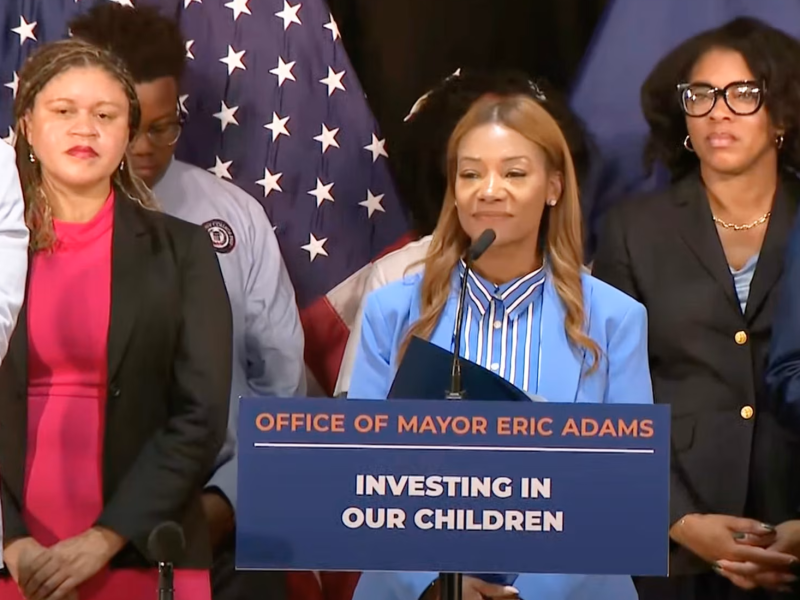Johnson appeared with New York City Mayor Eric Adams and other policymakers from the city at the school’s opening Thursday.