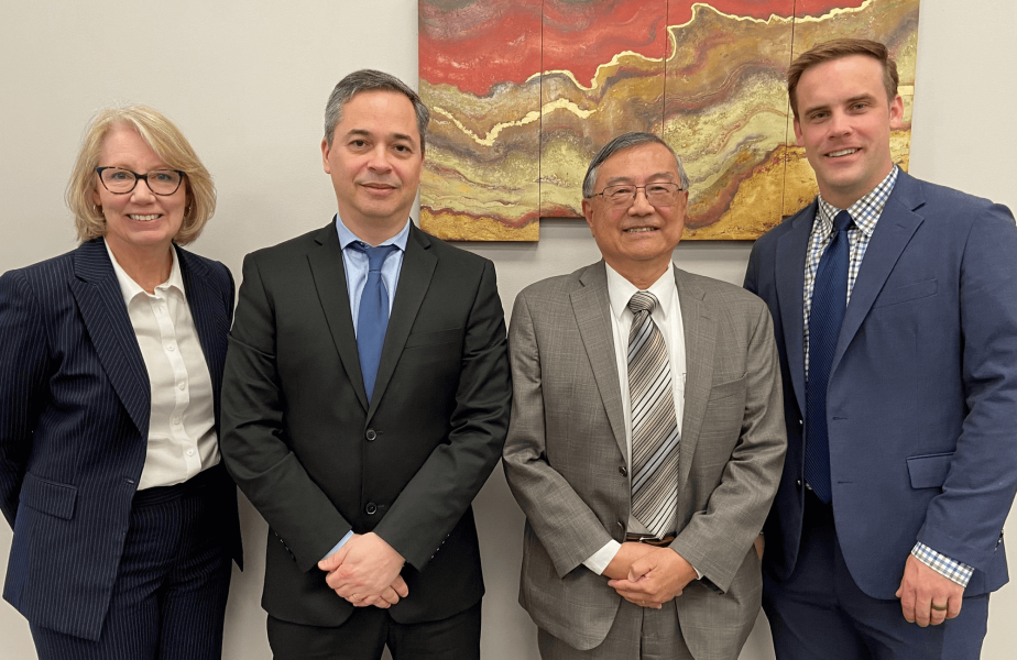 DPP’s Becky Harrington, left, and Noah Olson, right, with Pedro Gonzalez and Ben Hsu of QPS following the CDF meeting.