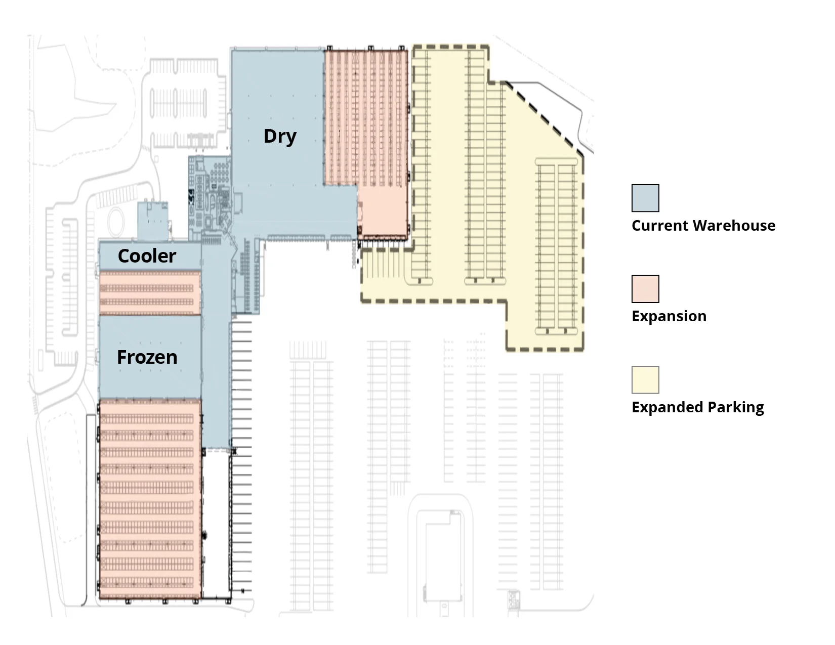 The expansion will add about 150,000 square feet of new storage space, over 19,000 pallet positions, approximately 15 new dock doors, and more than 100 trailer parking spaces.